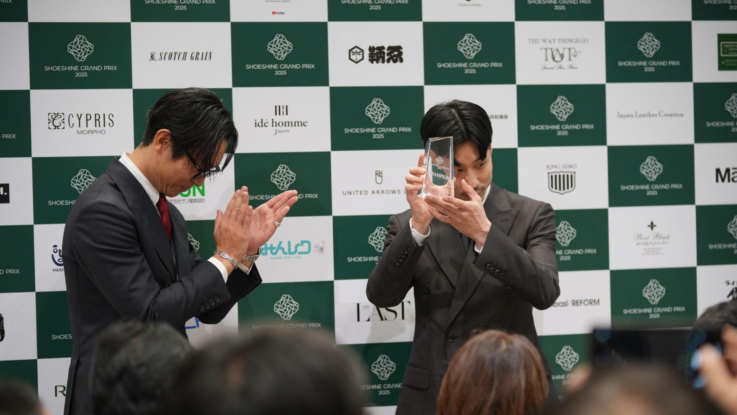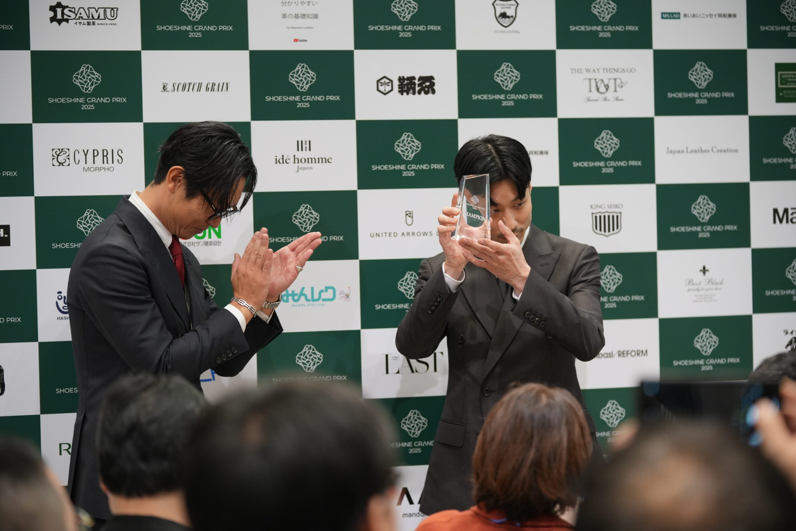 テクニカルポイントはブラインド審査(=靴のみでの審査)と競技中の様子などを見ての審査、プレゼンテーションポイントは競技中と磨いた靴の審査を複合的に行います。(部門によって異なります)